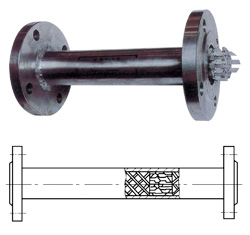 SV型单元是由一定规格的波纹板组装而成的圆柱体,技术特性:最高分散程度为:1-2mm,液液相及气气相不均匀度系数为:s X≤1~5%。适用于粘度≤102厘泊的液—液、液—气、气—气的混合乳化,反应、吸收、萃取、强化传热过程。